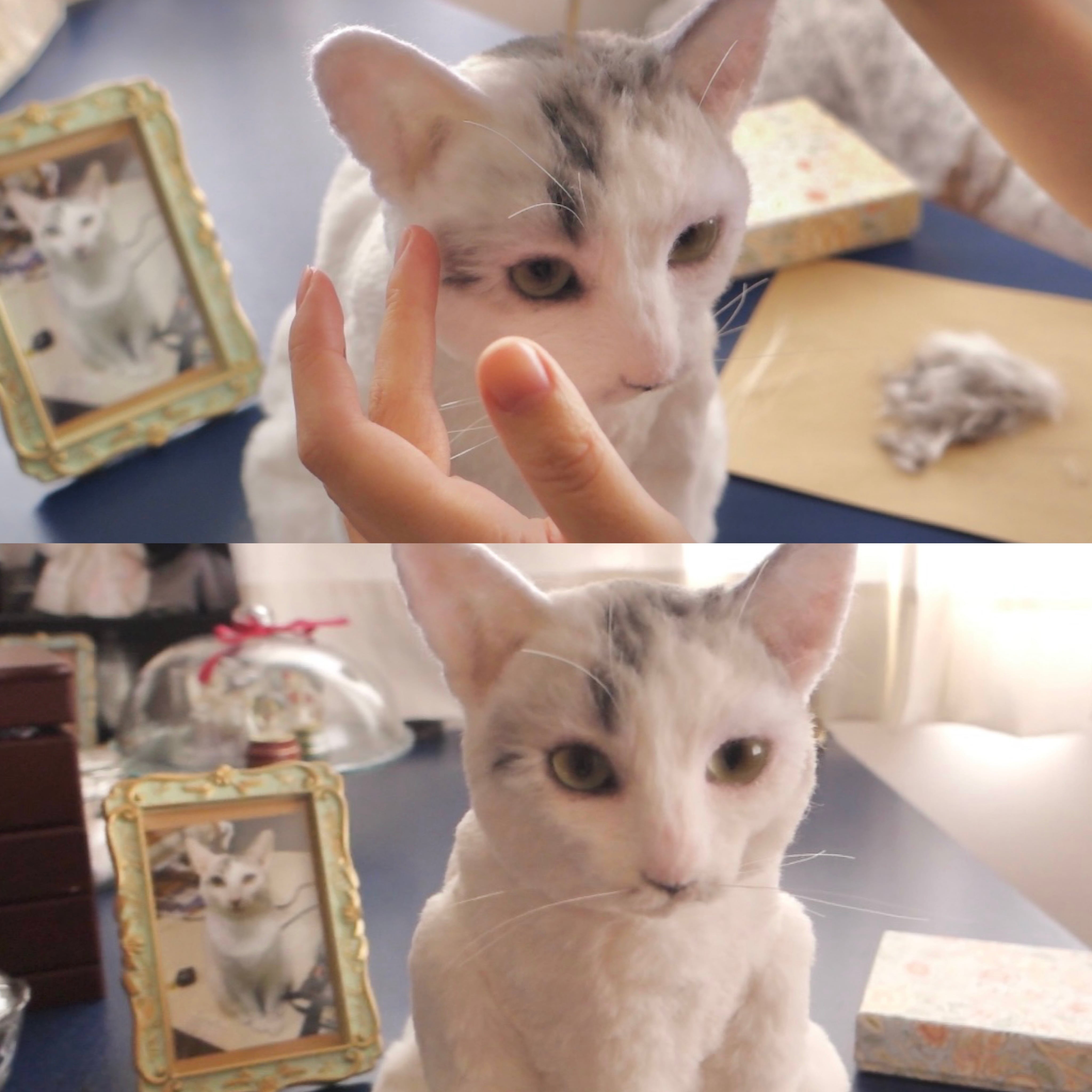 飼い主さまとご対面した時、ぬいぐるみの愛猫ちゃんには魂が吹き込まれ、ここでようやく作品が完成します。
